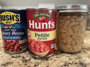 It’s a pretty simple recipe layout though, you add some sort of ground meat, 4 cans of beans, two cans of tomatoes and chili seasoning. That’s it. The options of what kind, are truly endless. I’ll put a list of ones I use below: