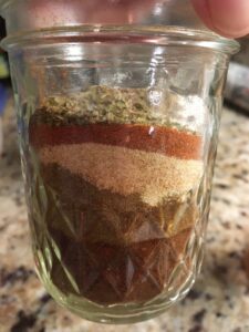 - In your airtight glass container, combine all ingredients. You can either stir or cover and shake ingredients until mixed. 4 TBSP of this seasoning mixture is equivalent to one store bought package of seasoning mix.