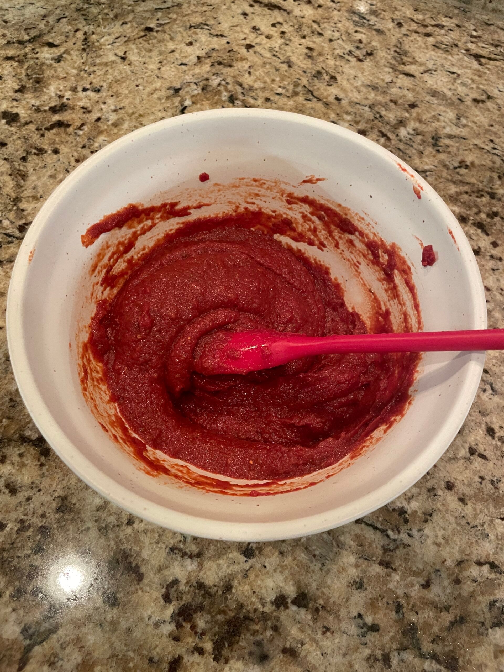 - This is when I get my small bowl and start making the homemade tomato sauce. You’ll add all of the sauce ingredients into the small mixing bowl and stir until completely combined. If you want a thinner sauce you can add more oil or vinegar a tsp at a time.