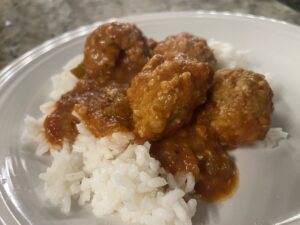 Once the meatballs are finished you can serve them alone with a side or you could serve them over rice or mashed potatoes. There are several options here. If you have any left overs, they’re good warmed over as well. I take left overs to work sometimes! Enjoy!